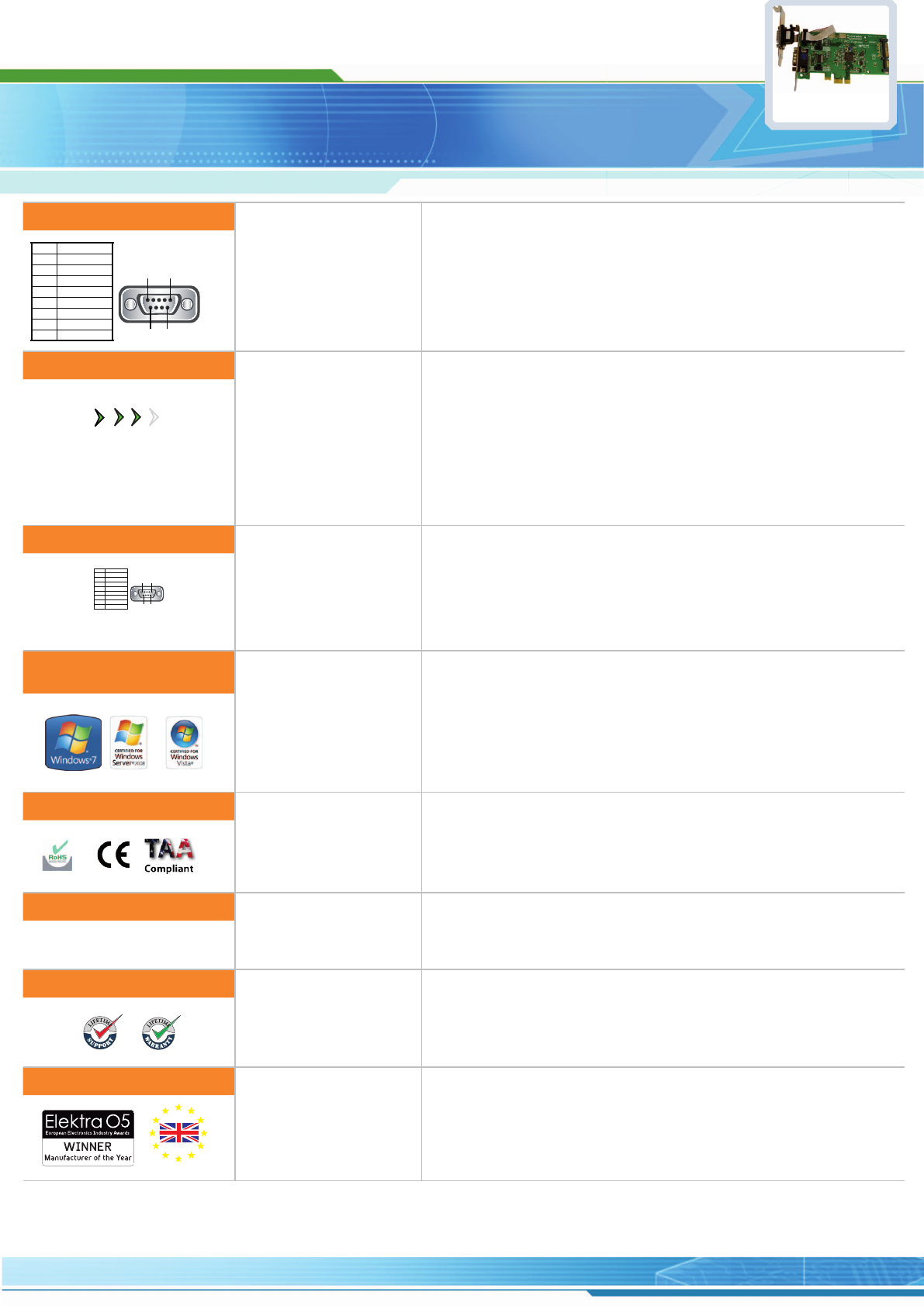 Other PCI Express Cards: 1 Port RS232 | 2 Port RS232 | 4 Port RS232 | 8 Port RS232 | 1 Port RS422/485 | 2 Port RS422/485 | 4 Port RS422/485